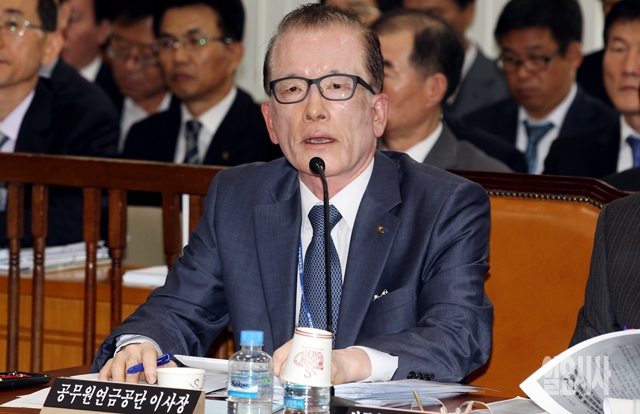 최재식 공무원연금관리공단 이사장이 24일 서울 여의도 국회에서 열린 안전행정위원회의 공무원연금관리공단 등에 대한 국정감사에서 의원들의 질의에 답하고 있다.