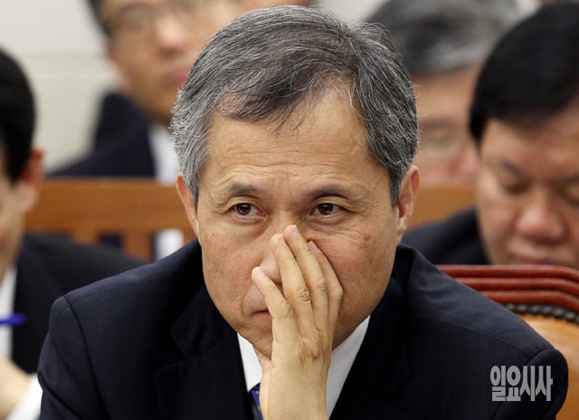 김상규 조달청장이 24일 서울 여의도 국회에서 열린 기획재정위원회의 국정감사에서 의원들의 질의를 경청하고 있다.