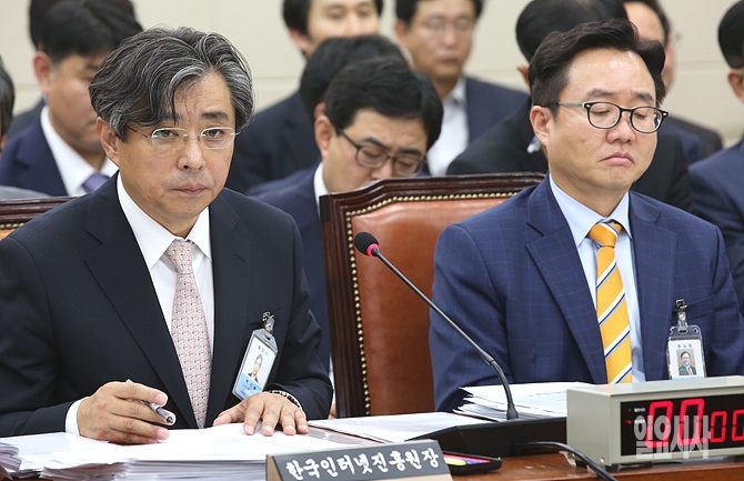 23일, 서울 여의도 국회에서 열린 미래창조과학부 국정감사에서 증인으로 출석한 백기승 한국인터넷진흥원장이 의원들의 질의를 듣고 있다.