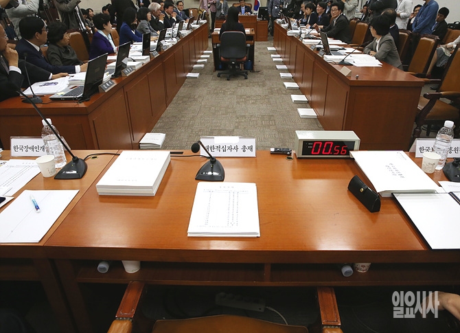 23일, 서울 여의도 국회에서 보건복지위원회 회의실에서 열린 국정감사가 열린 가운데, 증인으로 채택된 김성주 대한적십자사 총재 증인석이 텅 비어 있다.