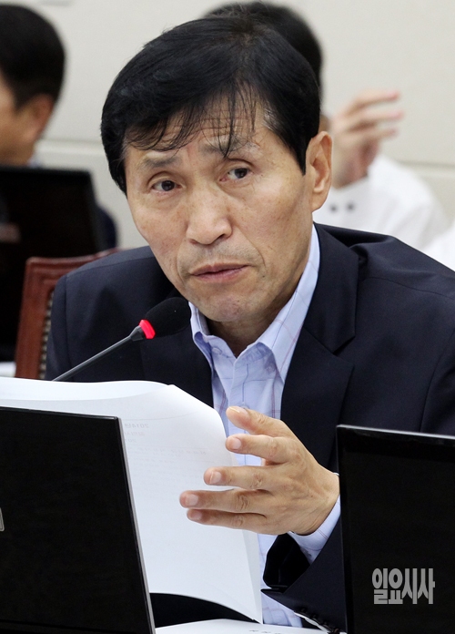 새정치민주연합 이학영 의원이 24일 서울 여의도 국회에서 열린 정무위원회의 국정감사에서 질의를 하고 있다.