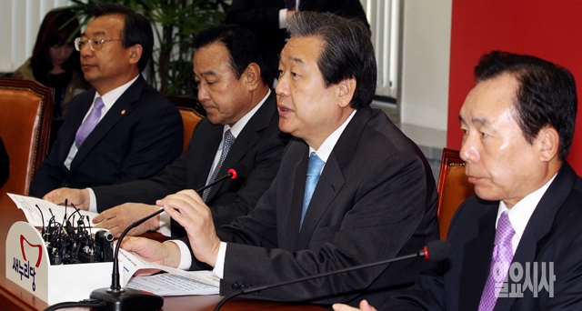 김무성 새누리당 대표(오른쪽에서 두번째)가 27일 서울 여의도 국회에서 열린 최고위원회의에서 모두발언을 하고 있다.