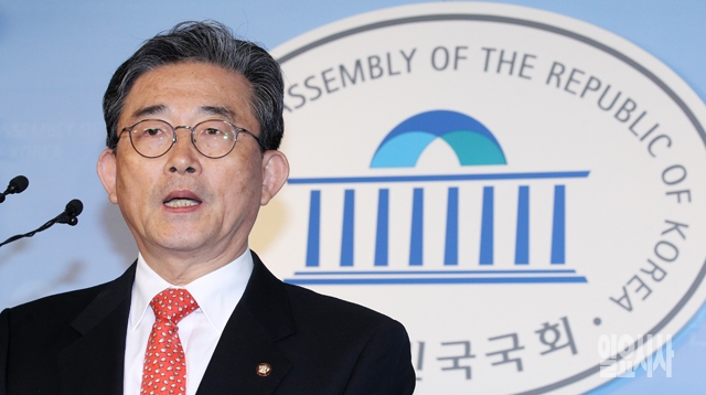 새누리당 공무원연금 개혁 태스크포스(TF) 이한구 위원장이 27일 서울 여의도 국회 정론관에서 기자회견을 열고 당의 공무원연금 개혁안을 발표하고 있다.