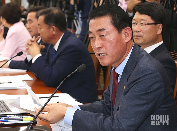 27일, 서울 여의도 국회 국토교통위원회 국정감사에 새누리당 황영철 의원이 이날 증인으로 출석한 배우 김부선씨에게 질의하고 있다.