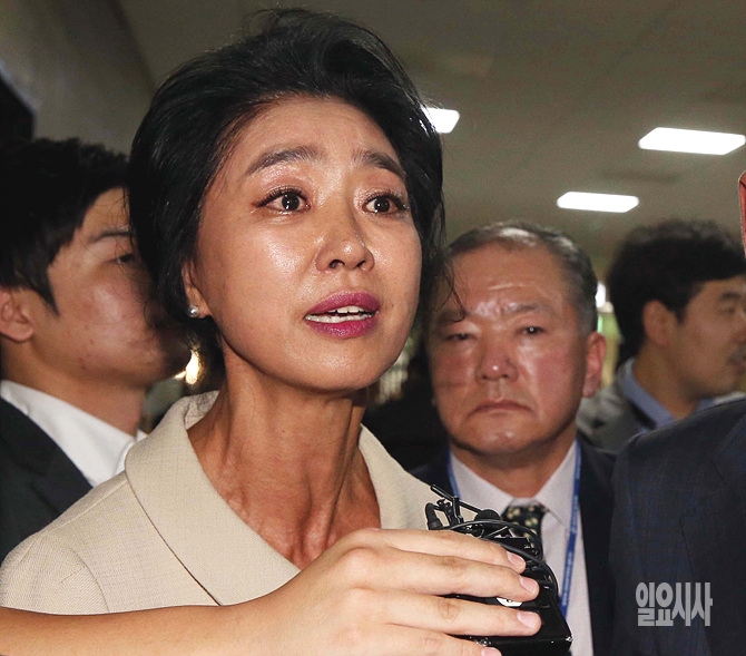 27일, 서울 여의도 국회 국토교통위원회 국정감사에 참고인 자격으로 출석한 배우 김부선씨가 눈시울을 붉히고 있다.