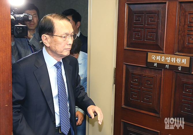 28일, 서울 여의도 국회에서 열린 국회 운영위 국정감사에서 증인으로 출석한 김기춘 비서실장이 국감장 안으로 입장하고 있다.