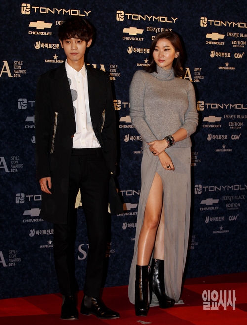 배우 정준영(왼쪽)과 모델 장윤주가 28일 서울 중구 동대문디자인플라자에서 열린 '2014 스타일 아이콘 어워즈(SIA)' 레드카펫 행사에 참석해 포토타임을 갖고 있다.