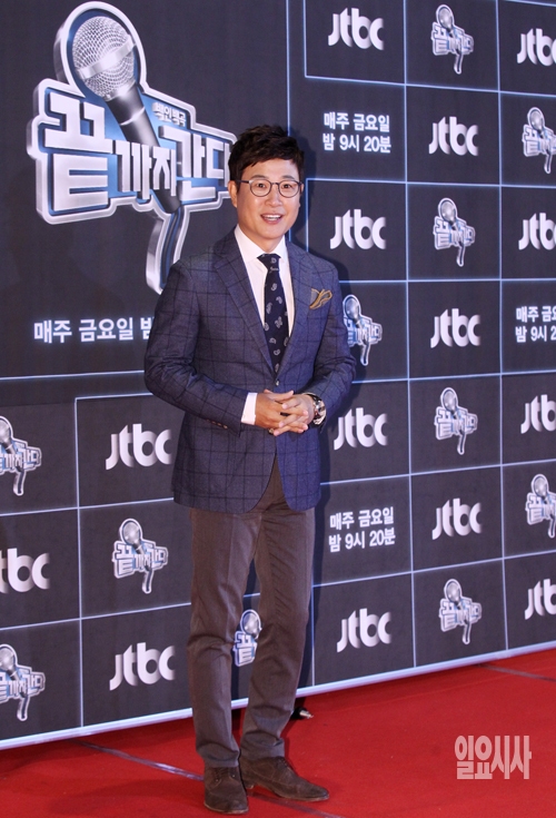29일 서울 중구 호암아트홀에서 열린 JTBC 예능프로그램 '백인백곡-끝까지 간다'(연출 김형중) 제작발표회에서 MC인 김성주가 포토타임을 갖고 있다.