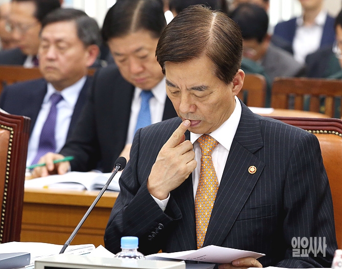 29일, 서울 여의도 국회 국방위원회 회의실에서 열린 예산안 심의 등에 대한 전체회의 도중 한민구 국방부장관이 답변자료를 살피고 있다.