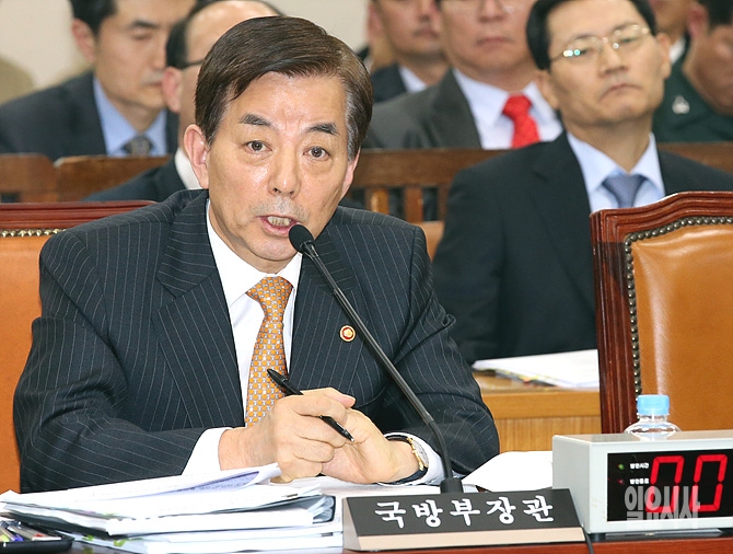 29일 서울 여의도 국회 국방위원회 회의실에서 열린 예산안 심의 전체회의에서 한민구 국방부장관이 의원들의 질의에 답변하고 있다.