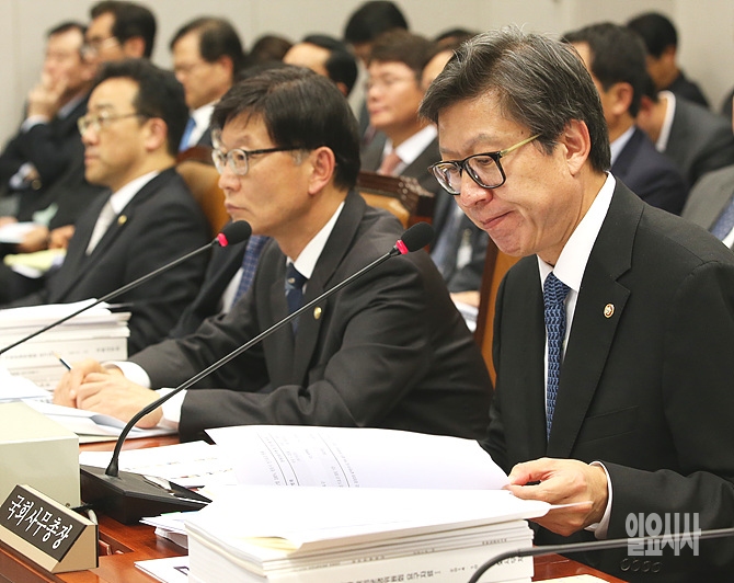 29일 오후, 서울 여의도 국회 운영위원회 회의실에서 열린 운영위 국정감사 도중 박형준 국회 사무총장이 답변자료를 살피고 있다.