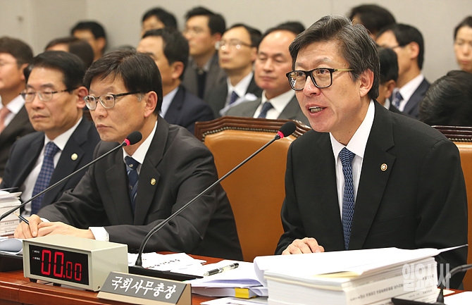 29일 오후, 서울 여의도 국회 운영위원회 회의실에서 열린 운영위 국정감사에서 박형준 국회 사무총장이 의원들의 질의에 답변하고 있다.