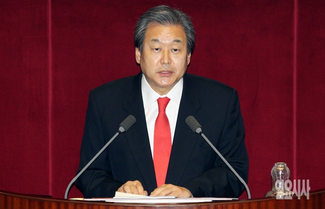 김무성 새누리당 대표가 30일 서울 여의도 국회에서 열린 본회의에서 교섭단체 대표연설을 하고 있다.