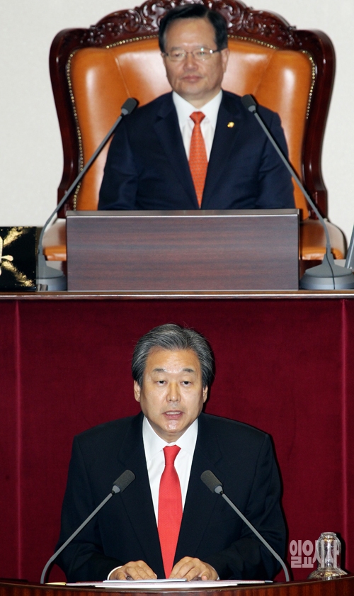 김무성 새누리당 대표가 30일 서울 여의도 국회에서 열린 본회의에서 교섭단체 대표연설을 하고 있다.