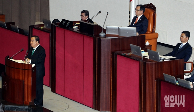 문희상 새정치민주연합 비상대책위원장이 30일 서울 여의도 국회에서 열린 본회의에서 교섭단체 대표연설을 하고 있다.