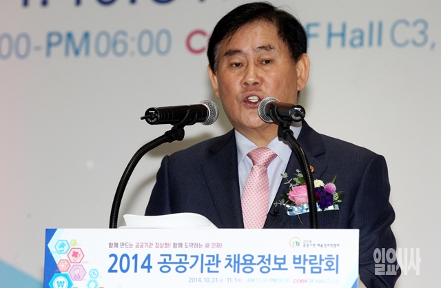 최경환 부총리겸 기획재정부 장관이 31일 서울 삼성동 코엑스에서 열린 2014 공공기관 채용정보 박람회 개회식에서 인사말을 하고 있다.
