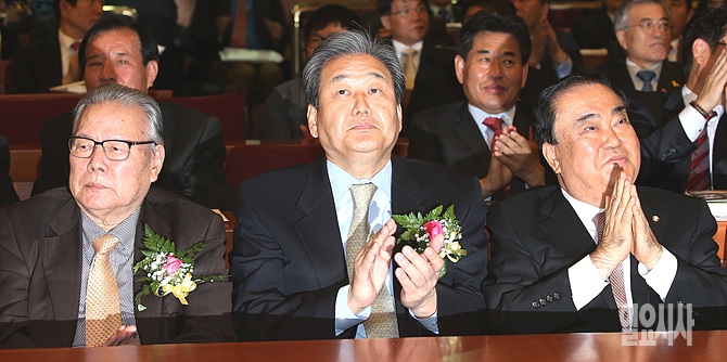 3일, 서울 여의도 국회 헌정기념관에서 고 김대중 전 대통령의 가신으로 통하는 동교동계 권노갑 새정치민주연합 상임고문 출판회가 열린 가운데, 이어령 전 문화부장관(사진 왼쪽)이 참석해 있다.