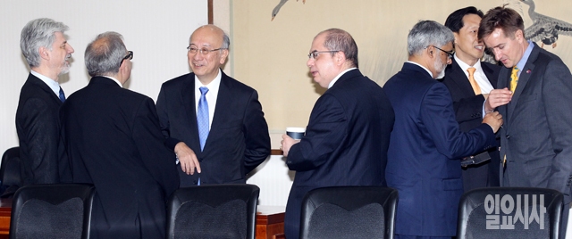 4일 서울 삼청동 남북회담본부에서 통일부 주재로 열린 주한공관대사 정책설명회에 참석한 각국 대사들이 환담을 나누고 있다.