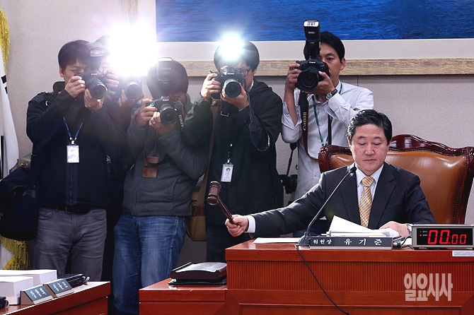 13일, 서울 여의도 국회 외교통일위원회 회의실에서 열린 전체회의에서 유기준 위원장이 한-호주FTA비준동의안 의결 처리하며 의사봉을 두드리고 있다.