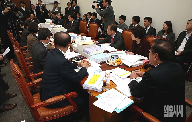 교육문화체육관광위원회 예산심사소위가 열린 25일 오후, 서울 여의도 국회 교문위 소회의실에서 김태년 소위원장과 의원들이 누리과정 예산을 심사하고 있다.