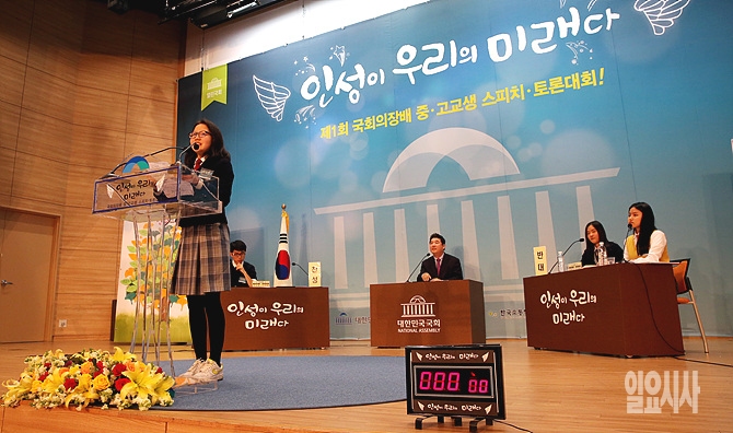 서울 여의도 국회 의원회관에서 1일 오후, '1회 국회의장배 중-고교생 스피치 및 토론회 결선대회'가 열린 가운데 참가 학생이 스피치를 하고 있다.