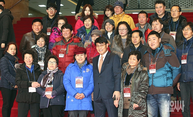 2일, 서울 여의도 국회 로텐더홀에서 새누리당 윤상현 의원이 국호 ㅣ참관객들과 함께 기념촬영을 하고 있다.