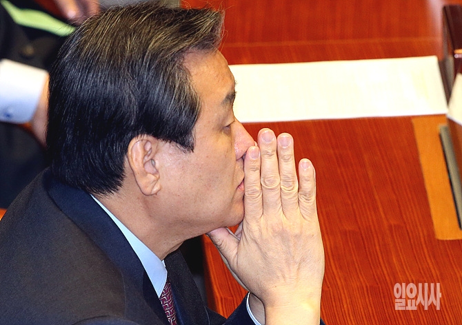 9일, 서울 여의도 국회 본회의장에서 열린 본회의 도중 새누리당 김무성 대표가 생각에 잠겨 있다.