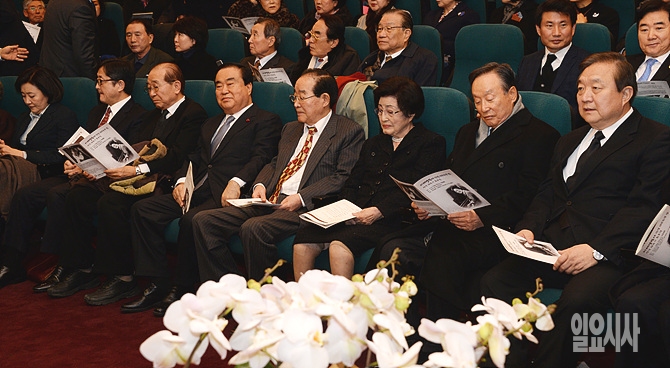 17일, 서울 여의도 국회 도서관 대강당에서 한국 최초의 여성 변호사 '이태영 박사 탄생 100주년 및 서거 16주기 추모식'이 거행된 가운데, 이희호 여사, 정대철 상임고문, 문희상 새정치민주연합 비상대책위원장 등이 참석해 있다.