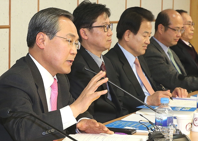 18일, 서울 여의도 국회 의원회관 제3세미나실에서 열린 '개헌담론을 진단한다 토론회'에서 우윤근 새정치민주연합 원내대표가 발언하고 있다.