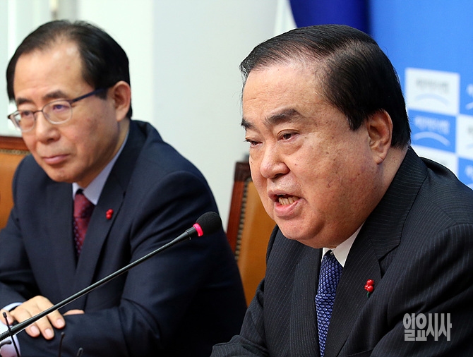 30일, 서울 여의도 국회 당대표실에서 문희상 새정치민주연합 비상대책위원장이 100일 기자간담회를 갖고 있다.