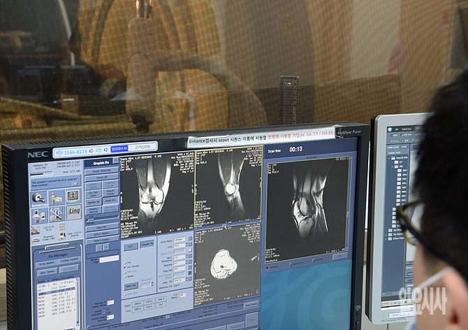 29일, 서울 종로구 서울대병원 본원에서 이완구 국무총리 후보자 차남 이씨의 병역 의혹과 관련한 MRI 공개검증이 이뤄지고 있다.