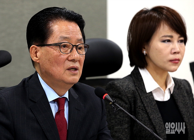 2일, 서울 여의도 국회에서 새정치민주연합 당대표 후보로 나선 박지원 후보가 긴급간담회에서 발언하고 있다.