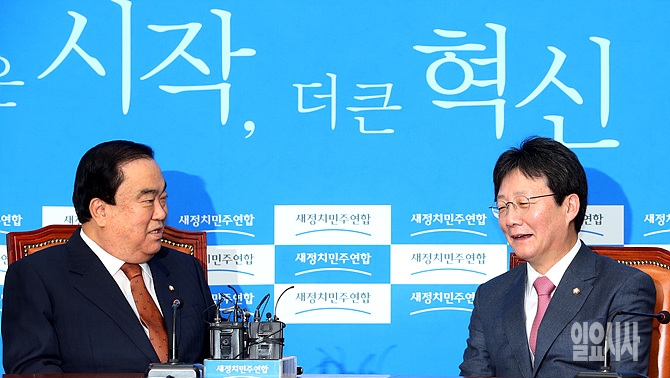 2일, 유승민 새누리당 신임 원내대표가 서울 여의도 국회 새정치민주연합 문희상 비상대책위원장을 예방해 면담하고 있다.