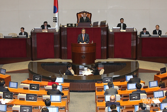 3일, 서울 여의도 국회 본회의장에서 새누리당 김무성 대표가 교섭단체 대표연설을 하고 있다.