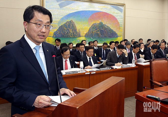 5일, 서울 여의도 국회에서 열린 정무위 전체회의에서 진웅섭 금감원장이 업무 현안보고를 하고 있다.