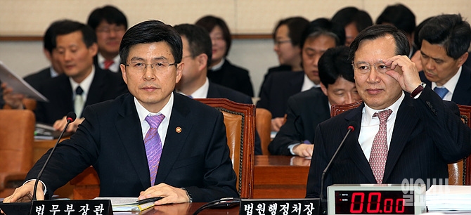 5일, 서울 여의도 국회 법제사법위원회 회의실에서 열린 전체회의에서 황교안 법무부장관과 박병대 법원행정처장이 출석해 있다.