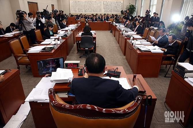 5일, 이상민 법사위원장이 서울 여의도 국회 법제사법위원회 회의실에서 열린 '김영란법 관련' 전체회의의 시작을 알리는 의사봉을 두드리고 있다.