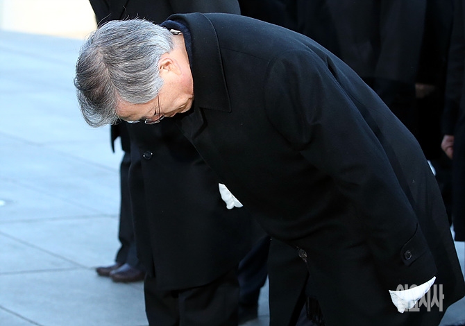 9일, 문재인 새정치민주연합 신임대표가 서울 동작구 국립현충원을 찾아 참배하고 있다.