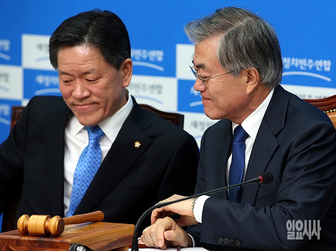 9일 서울 여의도 국회 새정치민주연합 회의실에서 열린 최고위원회의 도중 문재인 대표가 미소를 머금고 있다.