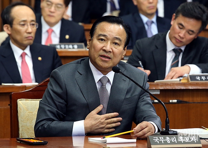 10일, 서울 여의도 국회 인사청문회장에서 이완구 총리후보자에 대한 인사청문회가 열린 가운데, 이 후보자가 청문위원들의 질문에 답변하고 있다.
