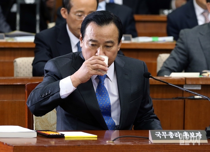 이완구 총리 후보자가 11일 오전 서울 여의도 국회에서 열린 인사청문회에 참석해 청문회 진행에 앞서 물을 마시고 있다.