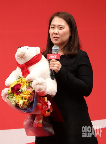 24일 오전 서울 소공동 웨스틴조선호텔에서 열린 ‘제20회 코카콜라 체육대상’ 시상식에서 우수선수상을 수상한 볼링의 이나영이 수상 뒤 소감을 밝히고 있다.