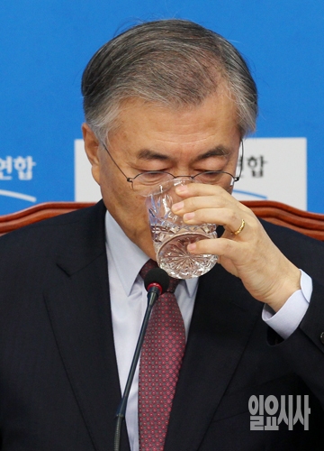 문재인 새정치민주연합 대표가 2일 오전 서울 여의도 국회에서 열린 최고위원회의에 참석해 물을 마시고 있다.