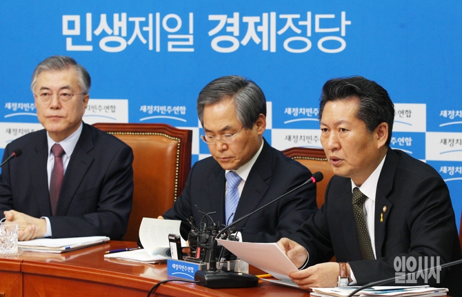 정청래 새정치민주연합 최고위원(오른쪽)이 2일 오전 서울 여의도 국회에서 열린 최고위원회의에서 발언하고 있다.