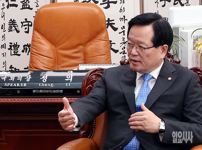2일 오전, 서울 여의도 국회 의장집무실에서 열린 새정치민주연합 문재인 대표의 예방에서 정의화 국회의장이 발언하고 있다.