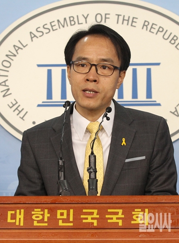 4·29 재보궐선거 관악을에 출마하는 정의당 이동영 후보가 3일 오전 서울 여의도 국회 정론관에서 출마기자회견을 하고 있다.