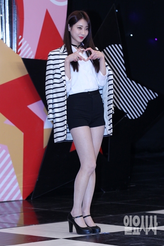 걸그룹 나인뮤지스의 경리가 9일 오후 경기도 고양시 일산 MBC드림센터에서 열린 케이블채널 MBC에브리원 <천생연분 리턴즈> 2기 기자간담회에 참석해 포즈를 취하고 있다.