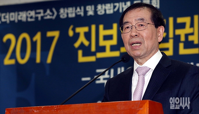 11일, 서울 여의도 국회 의원회관에서 열린 '더미래연구소 창립식 및 창립기념 토론회'에서 박원순 서울시장이 축사를 하고 있다.