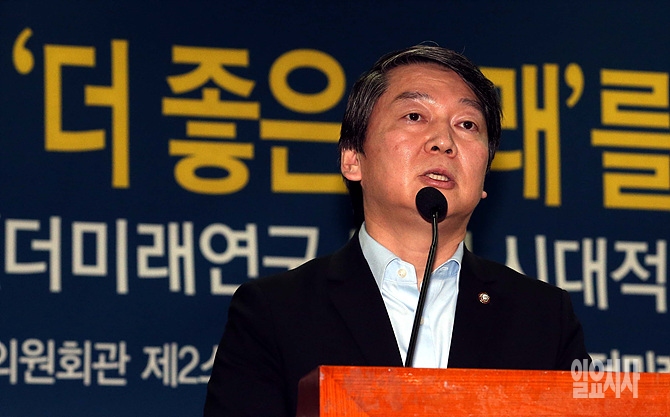 11일, 서울 여의도 국회 의원회관에서 열린 '더미래연구소 창립식 및 창립기념 토론회'에서 안철수 새정치민주연합 의원이 축사를 하고 있다.