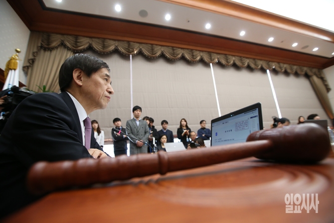 이주열 한국은행 총재가 12일 오전 서울 남대문로 한국은행에서 열린 금융통화위원회 전체회의에서 생각에 잠겨있다.